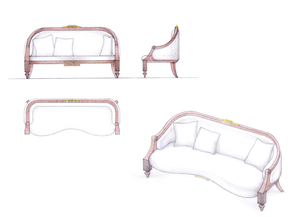 I can also draw the same piece of furniture in floor plans and elevations, so that you can see the faces of the object in their true form.